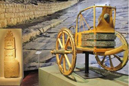 公元前7世紀(jì)相當(dāng)于我國(guó)春秋戰(zhàn)國(guó)時(shí)期,這是一輛真正的古代雙輪戰(zhàn)車,來(lái)自波普羅尼亞最大的墓葬。這輛輕快的戰(zhàn)車是領(lǐng)主在軍事閱兵時(shí)乘坐的,后來(lái)與一系列種類豐富的殉葬品一起陪葬,作為墓主權(quán)力的主要標(biāo)志。